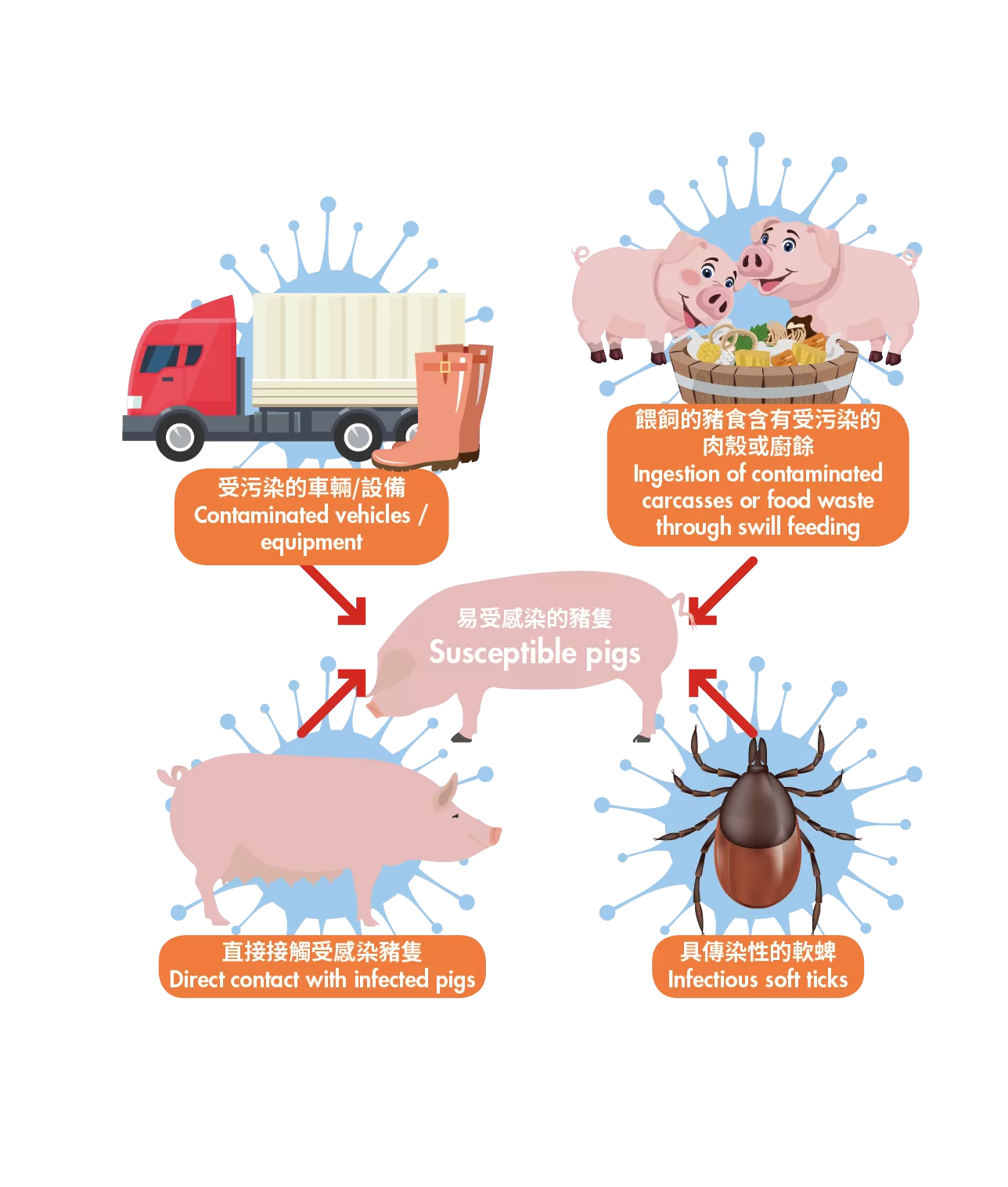 | Wild boars and other species serve as asymptomatic carriers, perpetuating the virus in the wild. |