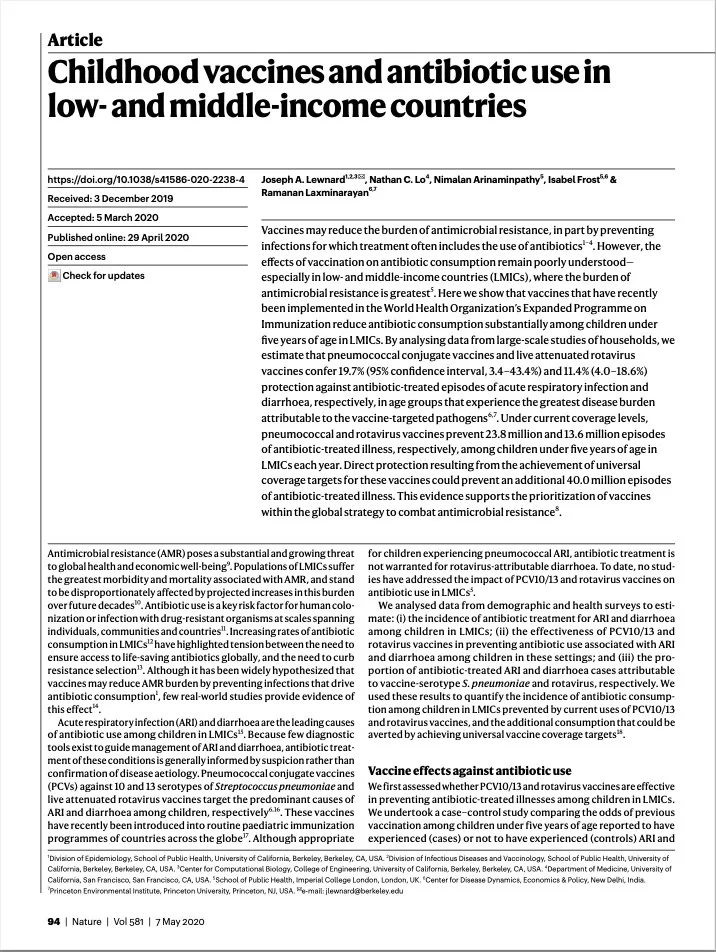 | Increase in routine childhood vaccine uptake reduces antibiotic prescriptions and related infections. |