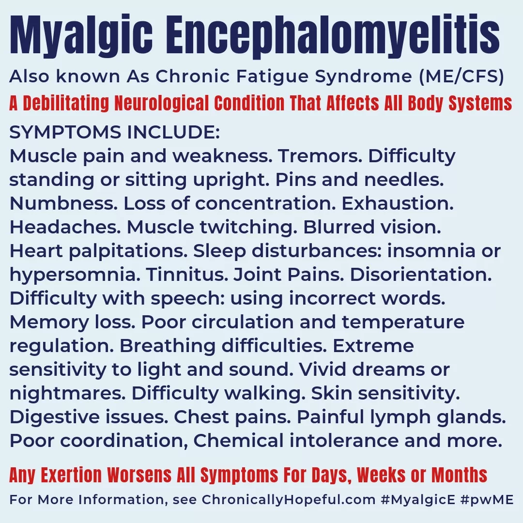 | Understanding ME/CFS | Characterized by persistent fatigue, sleep disturbances, pain, and cognitive issues. Symptoms vary widely, necessitating personalized coping strategies. |