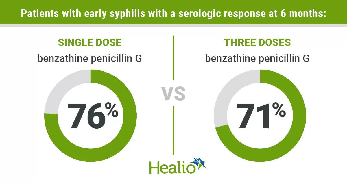 | Study Details | The study included 249 participants with early syphilis, comparing a one-time injection of 2.4 million units of BPG to three doses given weekly. |